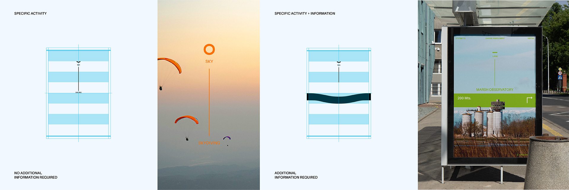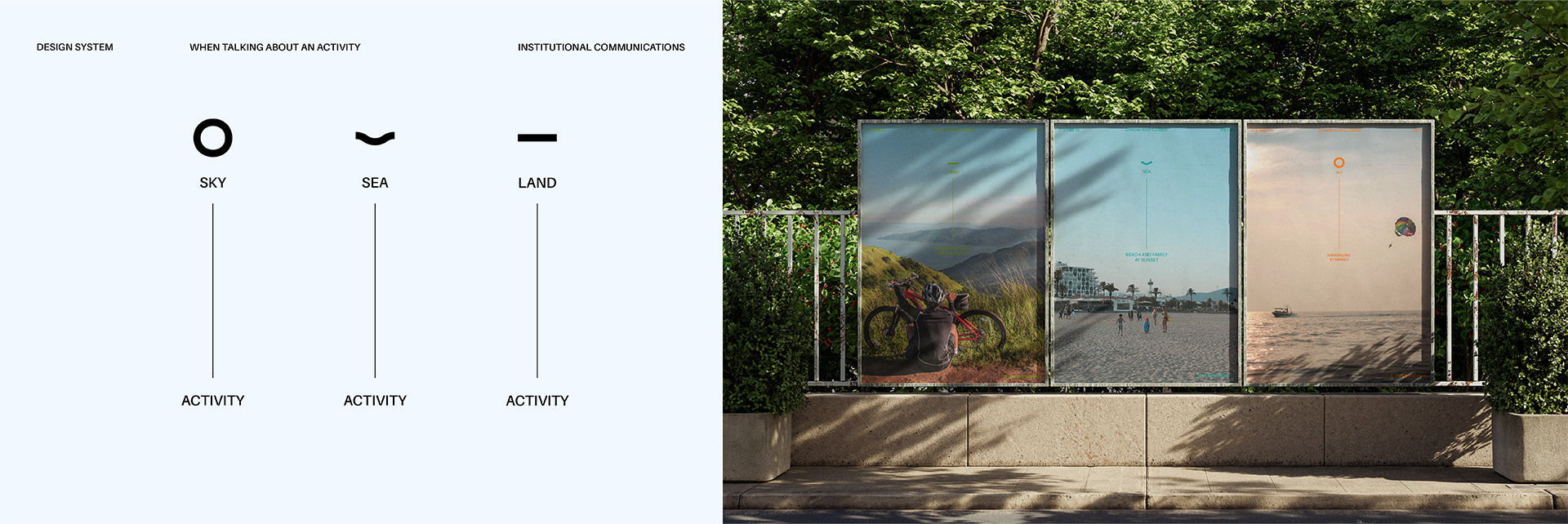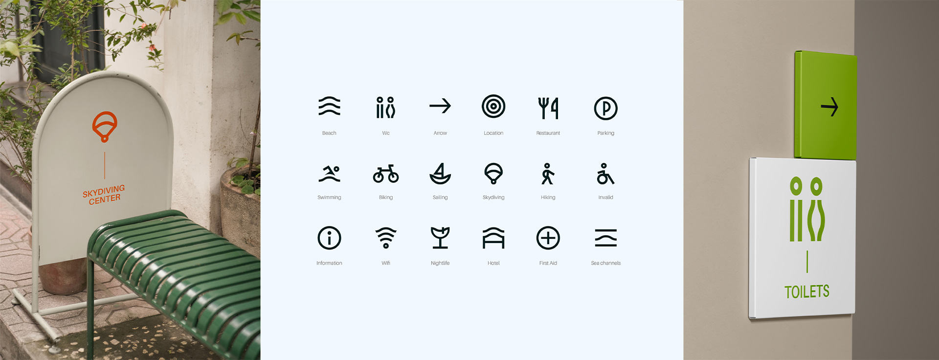 In designing the visual system, I aimed to integrate the logo’s symbolism with a thoughtful use of colors and images. Each color was chosen to enhance the visual narrative and reinforce the connection between the elements and the activities offered. This approach not only created a cohesive and elegant layout but also facilitated quick recognition and understanding of the elements and activities, enhancing the overall effectiveness of the visual system.