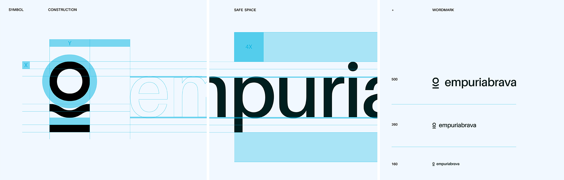 Once the symbol was designed, I focused on ensuring a fluid interaction between the symbol and the typography. I chose a modern, accessible typeface for the word «Empuriabrava» that complements the clean, rounded shapes of the symbol. This approach was essential for achieving visual balance and cohesion in the brand identity.