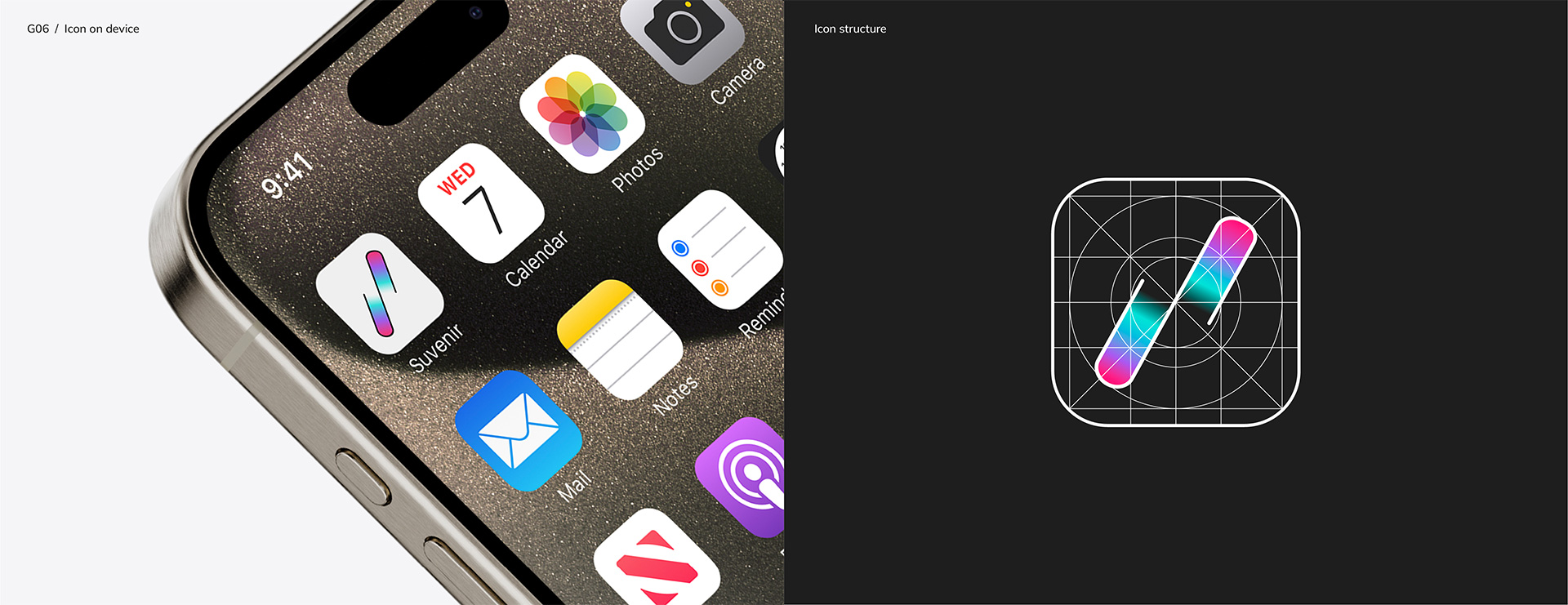 For Suvenir, we envisioned a visual identity that is both simple and inspiring. The app’s representative icon features an “S” in vibrant colors, symbolizing how users intertwine with the memories they create. We chose bright colors to enliven the image and sharing sections of the app, stimulating creativity and immersing users in the experience. These colors highlight captured moments, while functional elements are kept in sleek black to ensure clarity and ease of use.